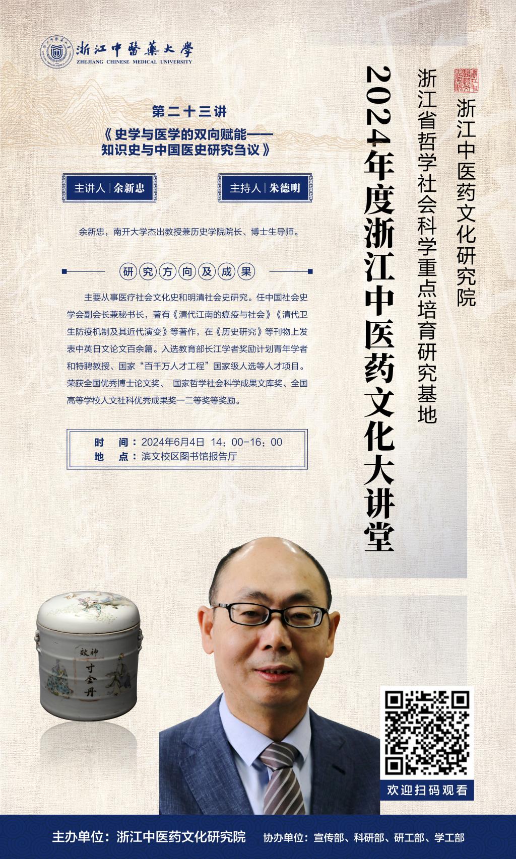 浙江中医药文化大讲堂第二十三讲:余新忠教授——史学与医学的双向赋能:知识史与中国医史研究刍议