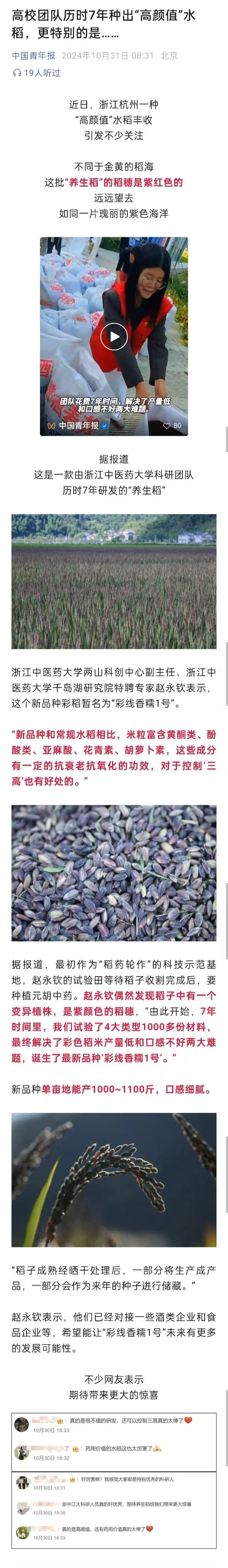 高校团队历时7年种出“高颜值”水稻,更特别的是……