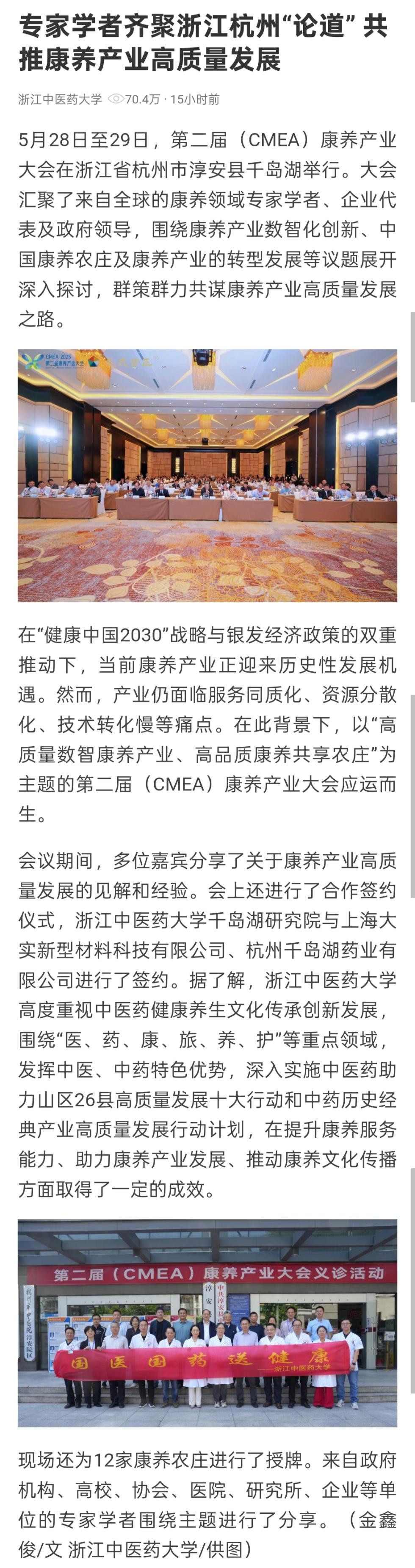 新华网、杭州新闻:专家学者齐聚浙江杭州“论道” 共推康养产业高质量发展