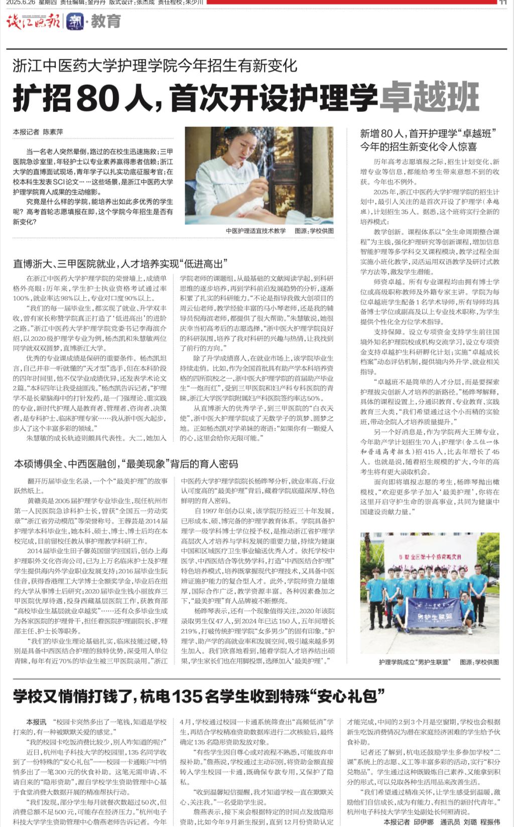 钱江晚报:久久精品一区二区三区四区护理学院 今年招生有新变化 扩招80人,首次开设护理学卓越班